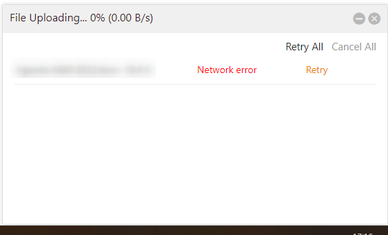So if you get an error message like the one below on a Seafile upload, while the error doesn't give you any information it will be due to a mismatched host name, here is how to fix it