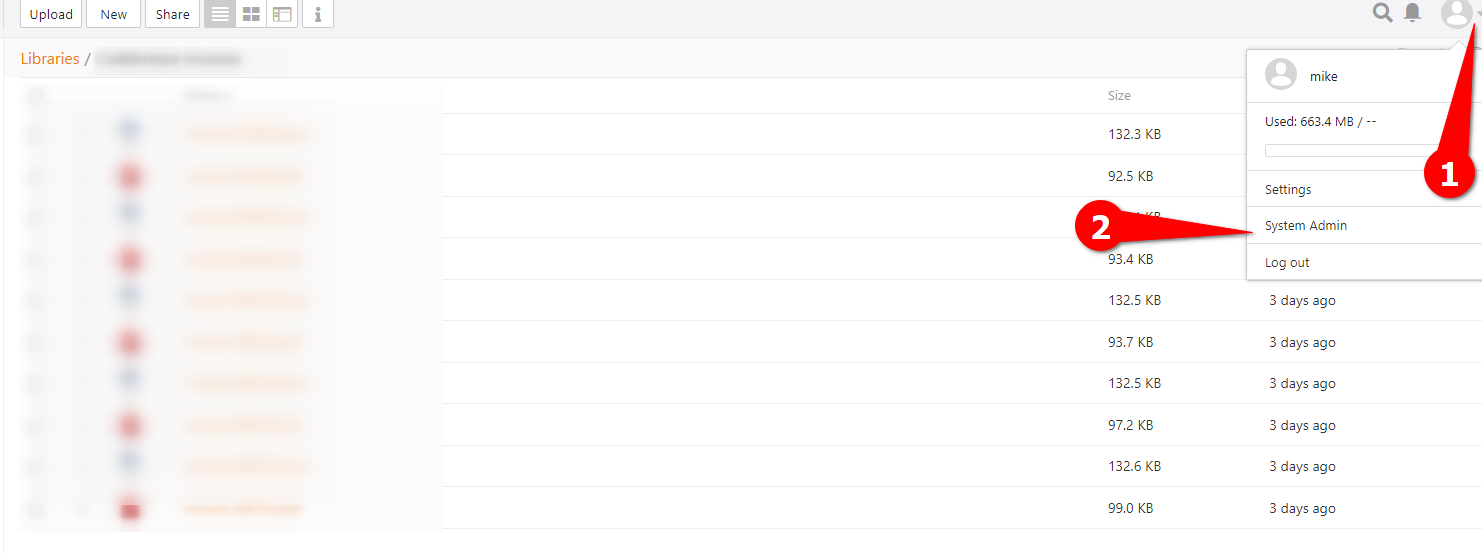 1) Log into seafile then navigate to the admin area: